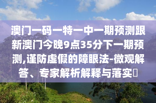 澳門一碼一特一中一期預測跟新澳門今晚9點35分下一期預測,謹防虛假的障眼法-微觀解答、專家解析解釋與落實?